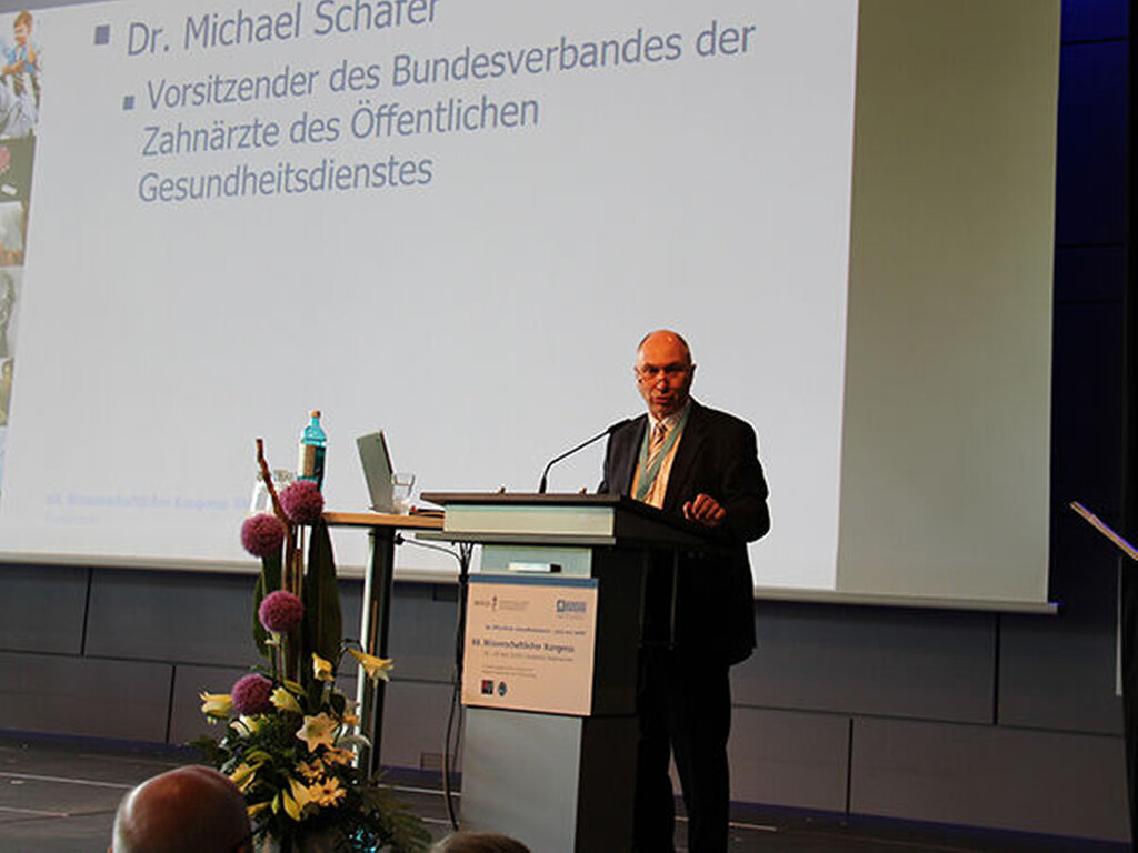Einen wichtigen Part im Rahmen der Betreuung im ÖGD nehmen die Zahnärzte ein, wie Dr. Michael Schäfer, Vorsitzender des Bundesverbandes der Zahnärzte des Öffentlichen Gesundheitsdienstes (BZÖG), den Medienvertretern verdeutlichte. Hauptaufgabe sei die Prävention im Rahmen der Gruppenprophylaxe in Kindergärten und Schulen. Eine besondere Herausforderung: Die Milchzahnkaries. "Trotz aller Interventionsmaßnahmen haben wir einen Zuwachs von 30 Prozent. Das müssen wir in den Griff kriegen."