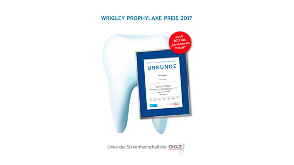 Die Gesundheitsinitiative Wrigley Oral Healthcare Program (WOHP) zeichnet 2017 zusammen mit der Deutschen Gesellschaft für Zahnerhaltung (DGZ) zum 23. Mal die besten Arbeiten und Projekte zur Prävention oraler Erkrankungen aus. Die Ausschreibung läuft bis zum 1. März 2017, der Preis ist mit bis zu 10.000 Euro dotiert. Ziel des Preises ist die Verbesserung der Zahn- und Mundgesundheit aller Bevölkerungsgruppen. Neben dem Wrigley Prophylaxe Preis wird zum vierten Mal zusätzlich der mit bis zu 2.000 Euro dotierte Sonderpreis „Niedergelassene Praxis und gesellschaftliches Engagement“ ausgeschrieben.