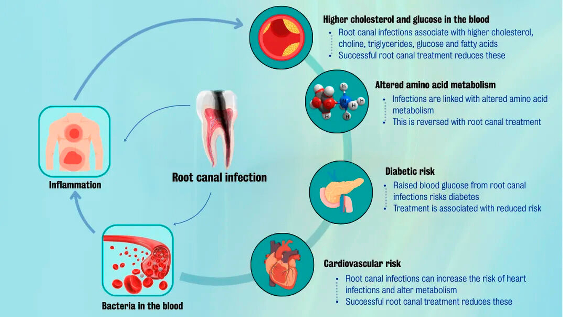 Zhang Y, Le Guennec A, Pussinen P, Proctor G, Niazi SA. Successful endodontic treatment improves glucose and lipid metabolism: a longitudinal metabolomic study. J Transl Med. 2025 Nov 18;23(1):1195. doi: 10.1186/s12967-025-07110-0. PMID: 41250096; PMCID: PMC12625218.
