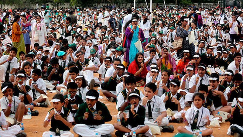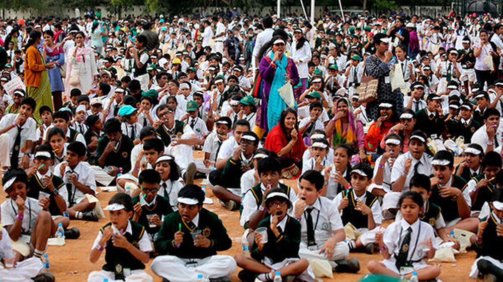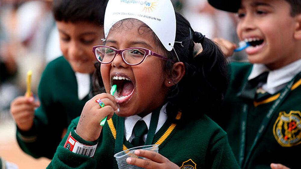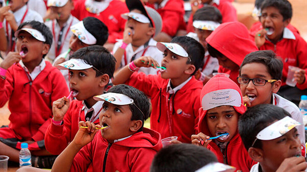 Die Erst- bis Elftklässler aus 20 Schulen erhielten Zahnbürsten und Zahnpasta von den Organisatoren. Dann ging es los!