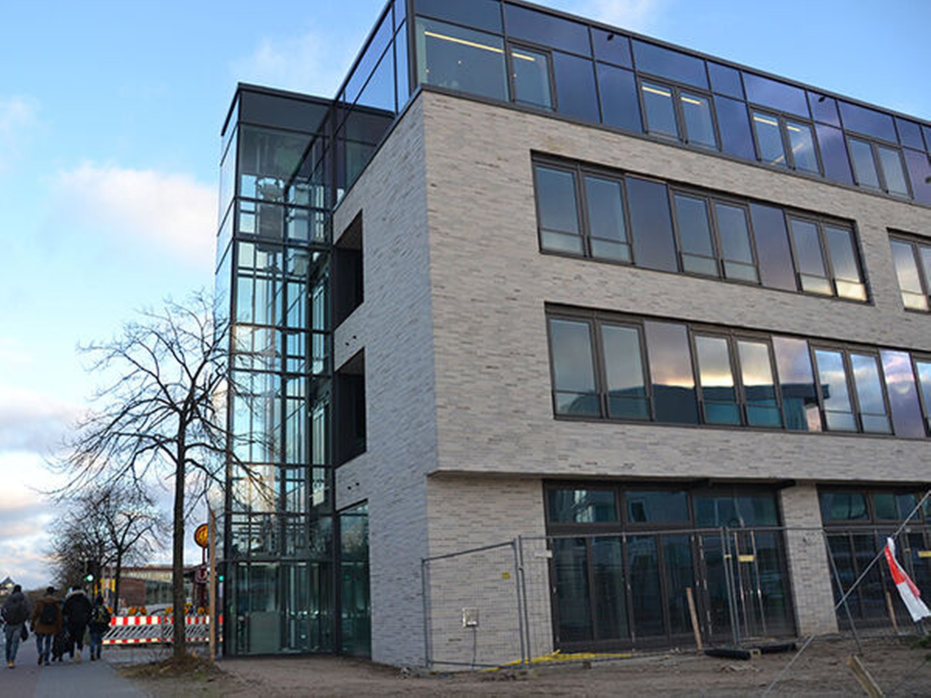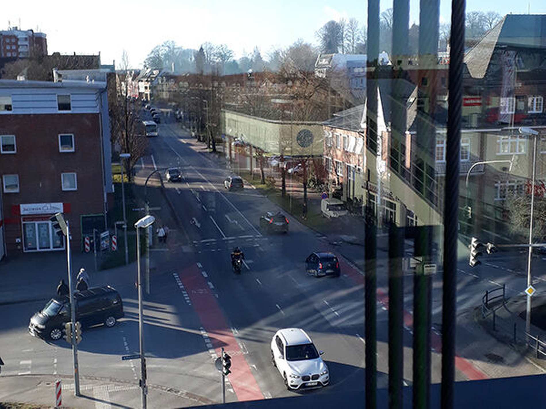 Mit dem Umzug am 17. Dezember an die Königswiesen hat sich auch die Aussicht der Schleswiger Praxis verbessert: Jetzt fährt man mit einen Außenaufzug in den dritten Stock.