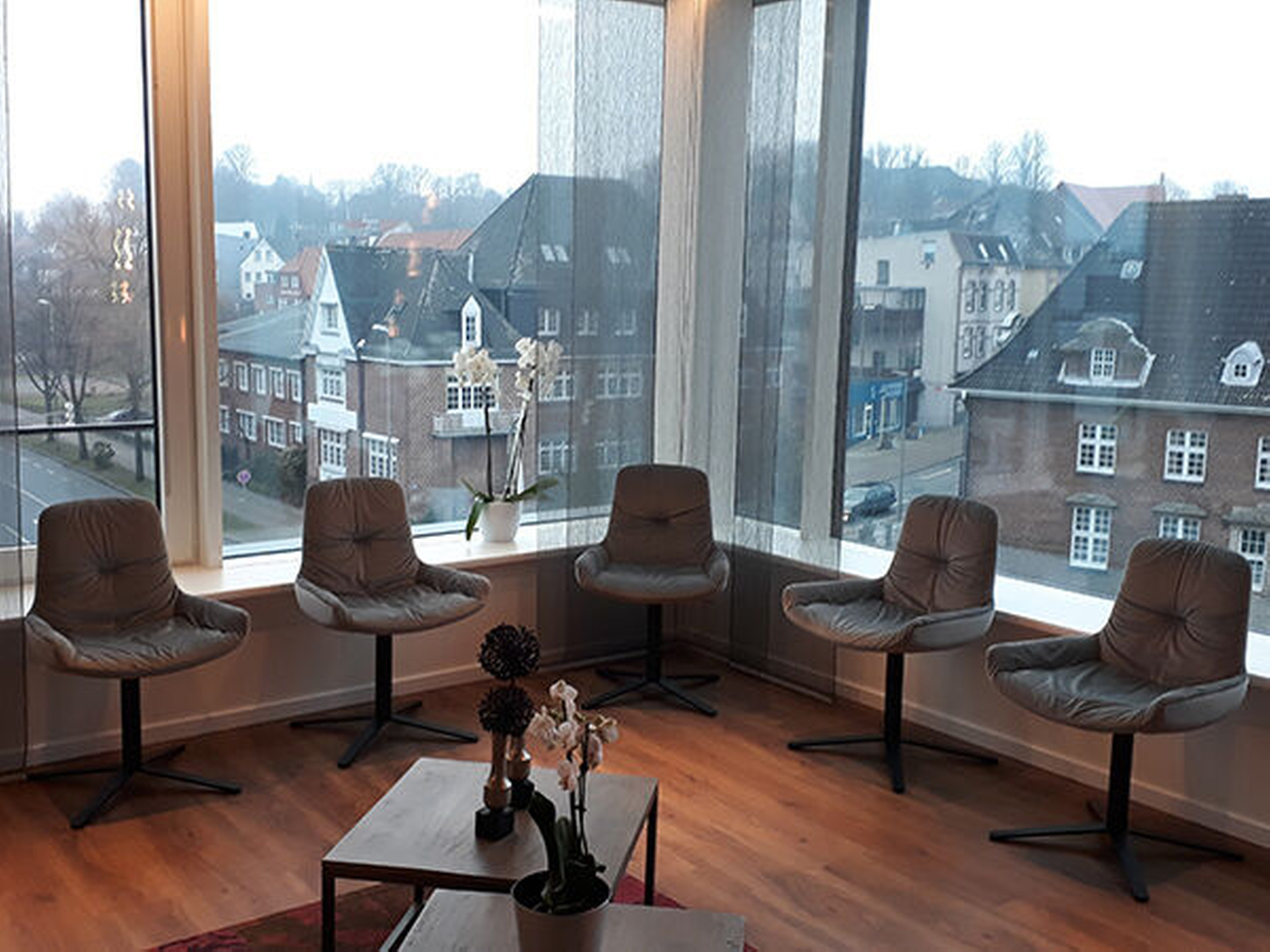 Oben angekommen erwartet die Patienten eine lichtdurchflutete Praxis.