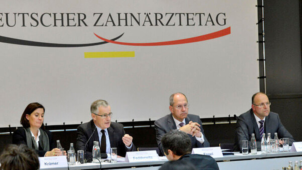 Auf einer Pressekonferenz anlässlich des Deutschen Zahnärztetages haben die Spitzen der zahnärztlichen Organisationen - KZBV-Vorsitzender Dr. Jürgen Fedderwitz, BZÄK-Präsident Dr. Peter Engel und DGZMK-Präsident Prof. Dr. Dr. Henning Schliephake (Foto v.l.n.r.) - am 9. November in Frankfurt gemeinsam ihre Kritik und ihre Forderungen an Politik, Gesellschaft und Versicherer erläutert:
