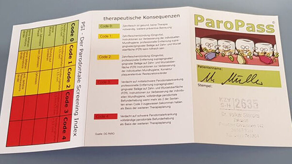 "Der ParoPass verdeutlicht allen Patienten ihren PA-Zustand, indem der Zahnarzt in den Ausweis den PSI-Index einträgt", erläutert Zahnarzt Dr. Volker Storcks aus Kiel. "Wir testen den ParoPass derzeit in vielen Praxen in Schleswig-Holstein. Die Patienten und Zahnärzte sind davon sehr angetan, die Prophylaxe ist damit wesentlich leichter vermittelbar."