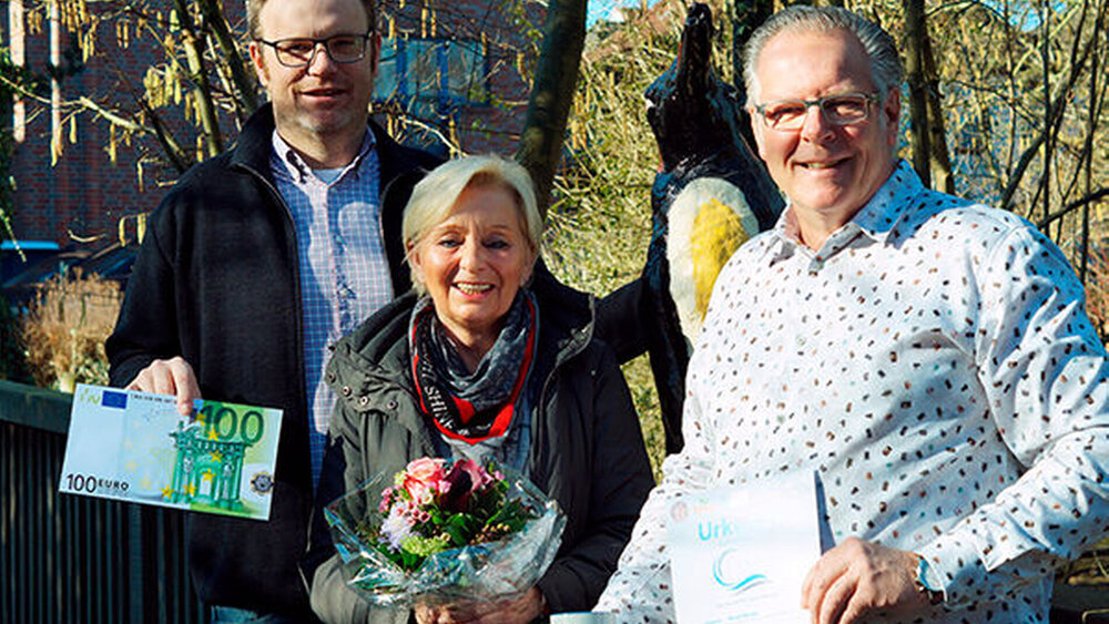 Dieser bekommt neben einer Urkunde und einer Tasse mit dem Logo der Aktion 100 Euro in bar überreicht. Das Logo zeigt eine stilisierte Welle - so wie die Idee, Gutes zu tun, sich wie eine Welle ausbreitet, erklärt Göcke. Die 100 Euro Preisgeld kommen von ortsansässigen Firmen, die der Zahnarzt schnell für die Idee begeistern konnte. Am Jahresende wird dann "Die gute Tat des Jahres" ermittelt, bestehend aus allen bisherigen Gewinnern. Hierfür werden dann 500 Euro ausgelobt.