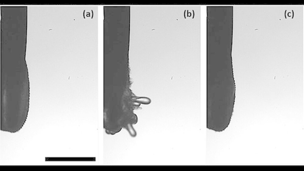 "Hier kommen die signifikanten elastischen Kräfte ins Spiel, die mit dem Coil-Stretch-Übergang von Polymermakromolekülen verbunden sind“, sagte Alexander Yarin, Professor an der Fakultät für Maschinenbau und Wirtschaftsingenieurwesen der Universität von Illinois Chicago und Senior-Autor der Studie. Coil-Stretch-Mechanismus bedeutet, dass sich geknäulte Polymerketten durch Scherkräfte strecken. „Sie unterdrücken die Schwanzdehnung und ziehen das Tröpfchen zurück, wodurch die Aerosolisierung vollständig verhindert wird."