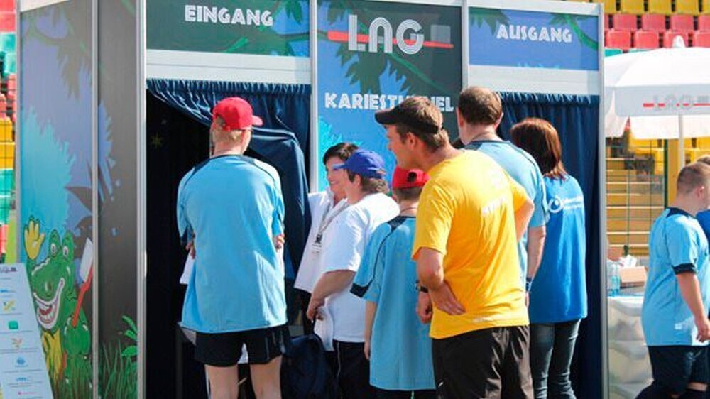 Special Olympics Berlin/Brandenburg hat das Programm „Gesund im Mund“ am Samstag im Friedrich-Ludwig-Jahn-Sportpark in Berlin-Prenzlauer Berg stellvertretend unter Leitung von Dr. Imke Kaschke durchgeführt. Kaschke ist Managerin von Healthy Athletes in Deutschland. Healthy Athletes ist das Gesundheitsprogramm, dass bei den Special Olympics - Spiele für Menschen mit Behinderung, angeboten wird. Dazu zählen auch Screening-Untersuchungen im Mundraum.