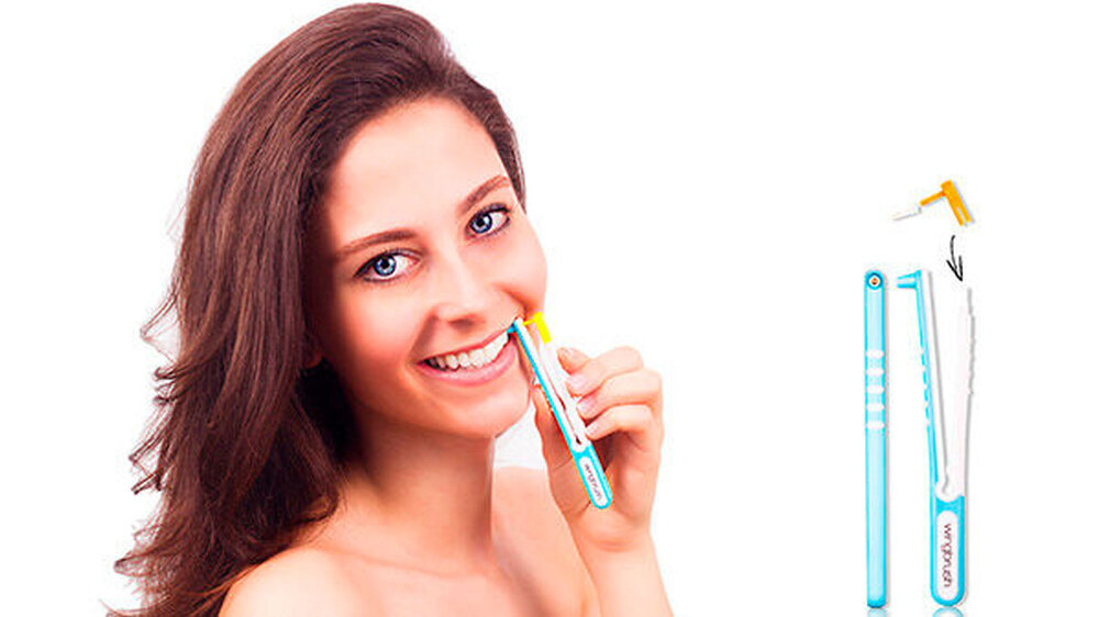 Interdentalbürsten können das Zahnfleisch verletzen und der Draht knickt bei der Anwendung um, der Interdentalfühler der Wingbrush findet schonend den Zahnzwischenraum und durch die geführte Interdentalbürste wird ein Umknicken verhindert.
