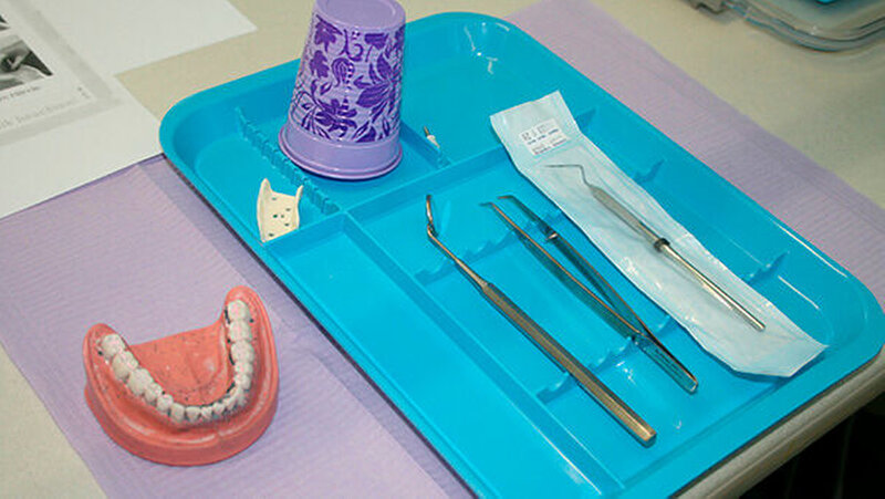 Im Eifer des Gefechts stützten sich einige bei der Arbeit immer mal wieder auf Phantomkopf Otto ab – ein echter Patient hätte hier protestiert. Andere hatten schnell heraus, wie die Zähne indirekt über den Mundspiegel zu inspizieren sind und wie sich Zahnseide möglichst elegant einfädeln lässt. Die ZFA-Neulinge durften ein Röntgenbild analysieren und Plaque mikroskopieren. Auch der bürokratische Aspekt der ZFA-Arbeit stand auf dem Programm.