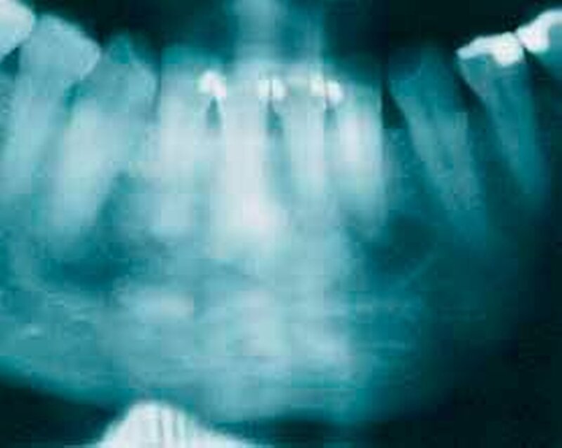 Als Zufallsbefund kam bei einer 47-jährigen Patientin im Bereich der Ober- und Unterkieferfrontzähne röntgenologisch eine periapikale Aufhellung mit wolkiger Verschattung zur Darstellung (Abbildung 1). Anamnestisch konnte sich die Patientin nicht an ein Unfallgeschehen erinnern.