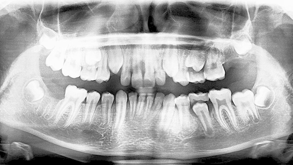 Der vorliegende Fall zeigt eindrucksvoll verschiedene Stadien der präeruptiven koronalen Resorption (PIR): eine präeruptiv im Röntgenbild sichtbare Transluzenzzone im Dentin des Zahns 47 an der koronalen Schmelz-Dentin Grenze mit intaktem Schmelzmantel und eine große Kavitätenbildung nach Durchbruch des Zahns 27 in die Mundhöhle.