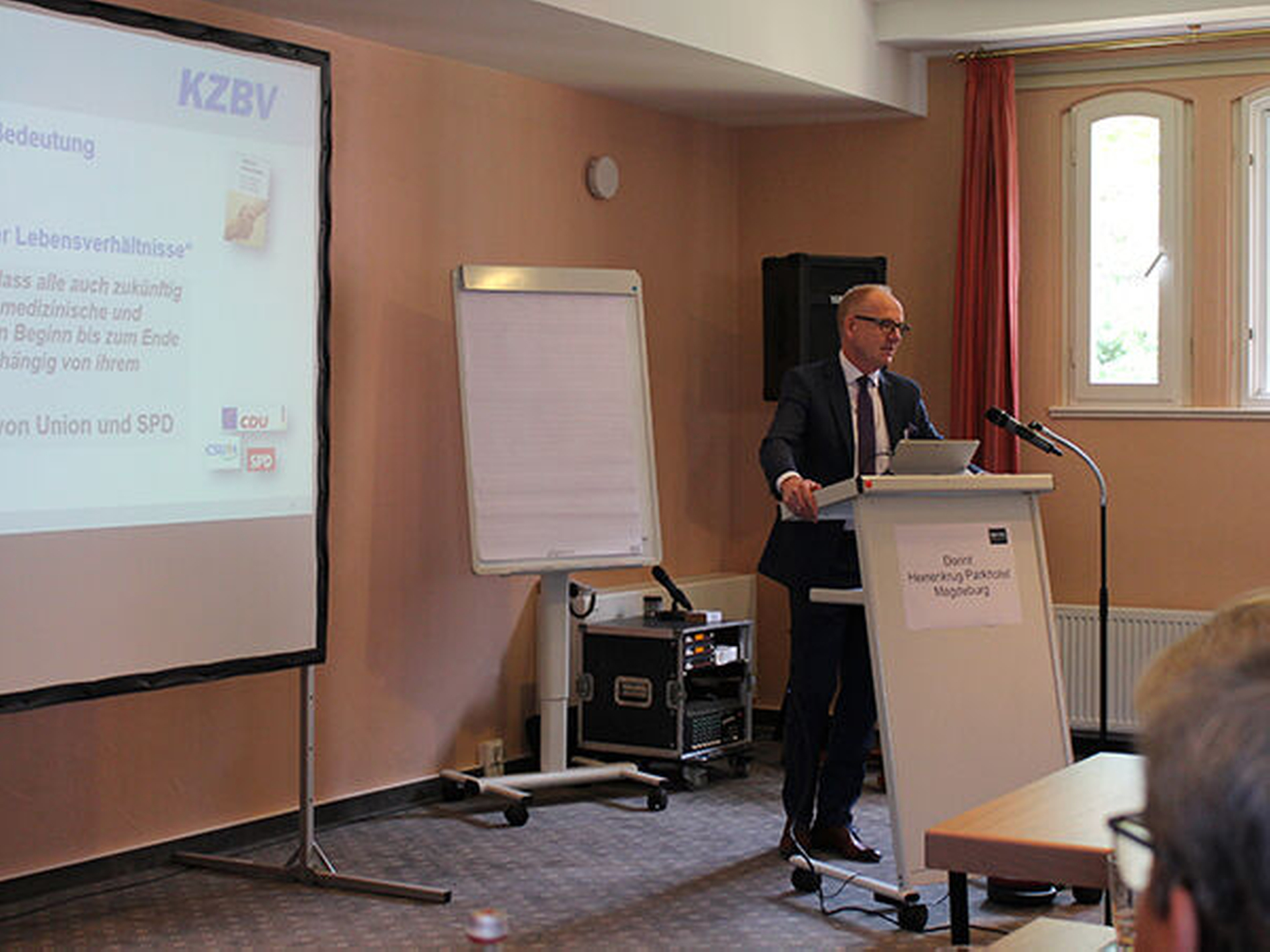 Martin Hendges, stellvertretender Vorsitzender des Vorstands der Kassenzahnärztlichen Bundesvereinigung (KZBV), ging in seinem Eröffnungsvortrag auf die aktuellen Entwicklungen in der Standespolitik ein – konkret auf die Einführung des Paragraphen 22a SGB V zum 1. Juli 2018.