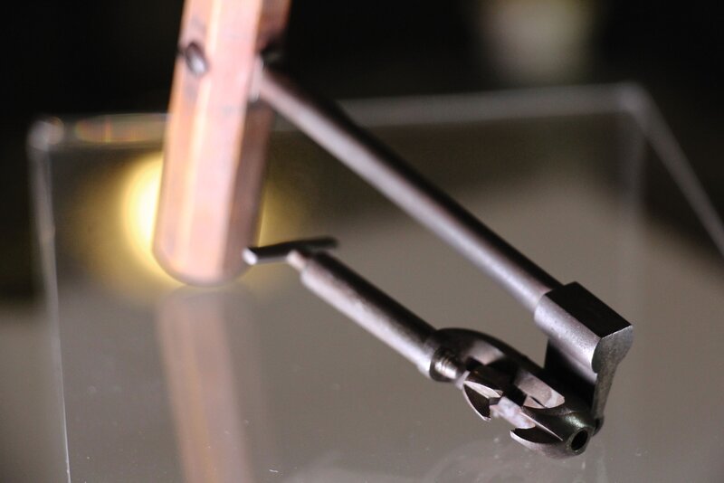 Wir versetzen uns in die Mitte des 19. Jahrhunderts. Der Zahnschlüssel hat sich als Extraktionsinstrument Nummer eins unter Dentisten und Zahnmedizinern etabliert. Es ist die Phase der Tüftler, die die Schlagkraft und das Einsatzspektrum des Werkzeugs erhöhen wollen: besser hebeln, gezielter abschneiden, exakter ansetzen. Konkret war das hier ein Versuch, die Kombination aus Zahnschlüssel und Seitenhebel zu optimieren.