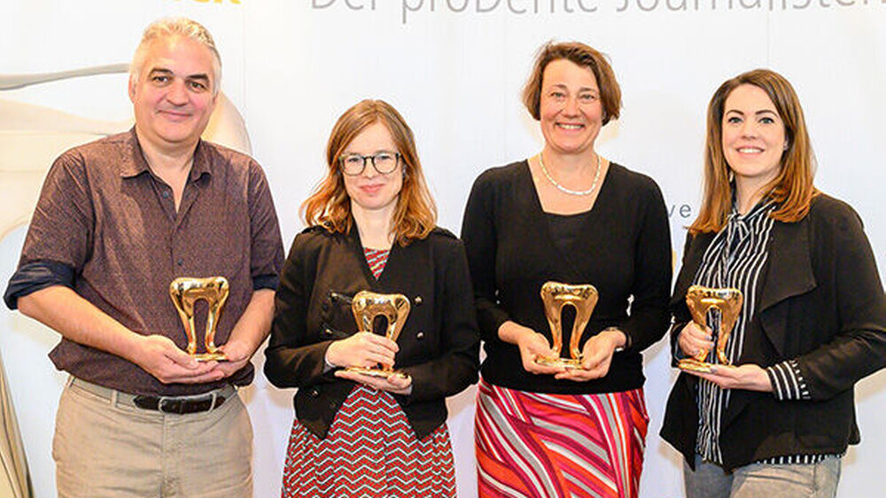 Die vier Gewinner: Silke Droll (Apotheken Umschau), das Redaktionsteam von NDR Visite, Isabell Seifert (NDR) und Thomas Samboll (Deutschlandfunk).
