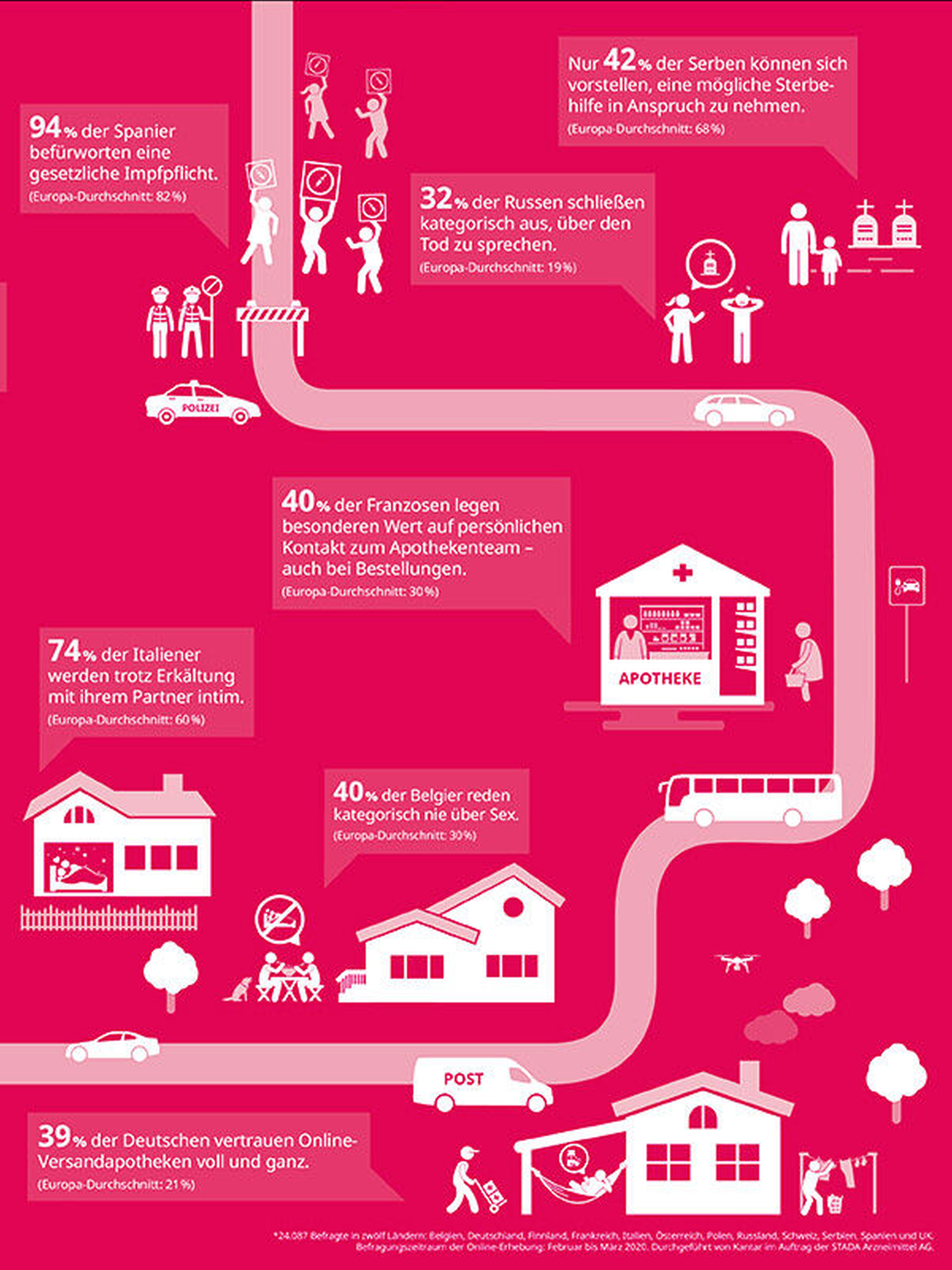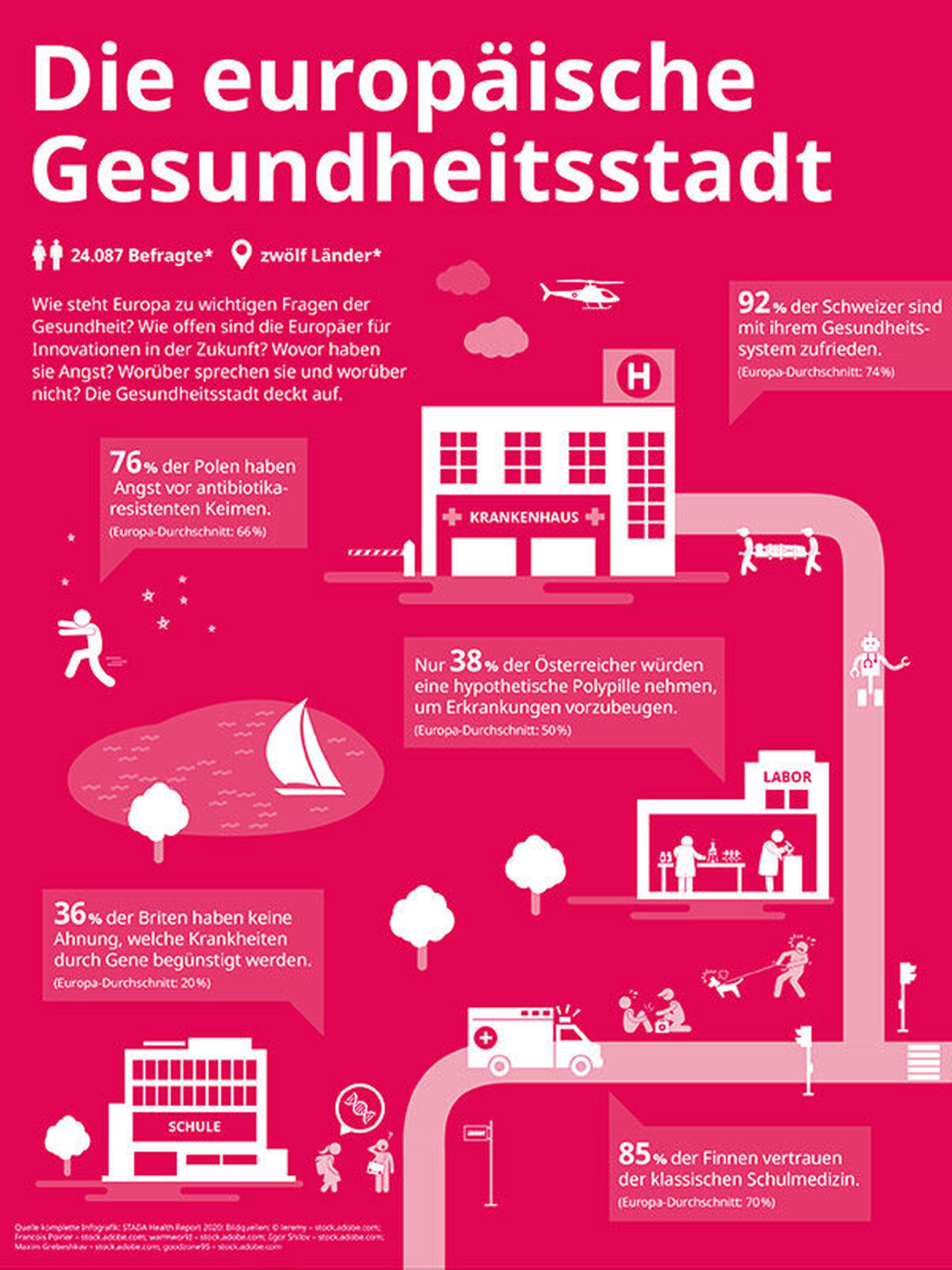 Der Stada Health Report 2020 zeigt, dass die Anerkennung des Personals des Gesundheitswesens durch die Coronakrise deutlich gestiegen ist. Die Marktforschungsagentur Kantar befragte insgesamt 24.000 Menschen aus 12 europäischen Ländern zu Zukunftsthemen im Gesundheitsbereich. Gefragt wurde nach der Einstellung und dem Wissen zu Impfungen, digitaler Medizin und zukünftigen Gentests.