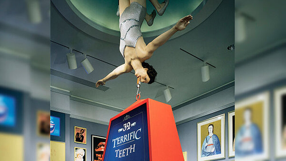 Die Frau im silbernen Badeanzug hängt kopfüber am Trapez von der Decke. Sie beißt in ein Mundstück und hält damit ein gewaltiges Gewicht in der Luft. Die Akrobatin, deren Kunststück die Besucher des Dr. Samuel D. Harris National Museum of Dentistry in Baltimore begrüßt, ist eine Nachbildung von Penny Wilson, die schon als Zwölfjährige in den 1950er Jahren für ihren "Eisenkiefer" berühmt war.