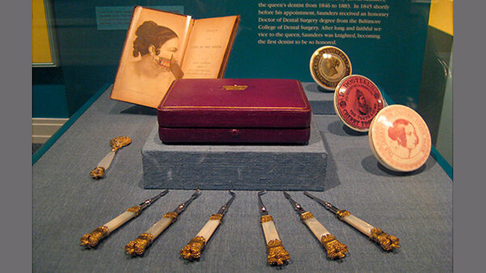 Zahnmedizinisches Besteck von Edwin Saunders, dem Behandler von Queen Victoria, gehört ebenfalls zur Sammlung. Darunter sind Instrumente mit Perlmuttgriff und Verzierungen aus vergoldetem Silber, ein Dentalspiegel mit einem Griff aus Achat und Büchsen mit der royalen Kirschzahnpasta.