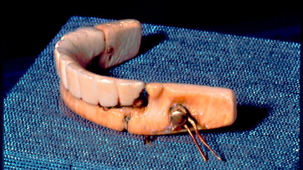 Das prominenteste Ausstellungsstück stammt aus dem Mund von George Washington: eine Elfenbein-Prothese mit Goldfedern. Der so gut wie zahnlose Präsident kämpfte zeitlebens nicht nur mit wuchtigen Prothesen, sondern auch mit der Unterstellung, er trage ein Holzgebiss.