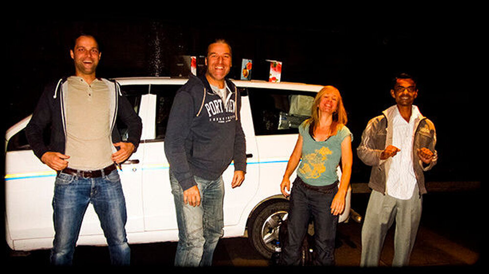 Vor dem Hotel lerne ich noch den indischen Producer und seinen Assistenten kennen. Der Producer ist bei einem staatlichen Fernsehsender angestellt, hat sich im Vorfeld um die Organisation der beteiligten Zahnärzte in Jaipur, die Unterkünfte und Drehgenehmigungen gekümmert und steht uns nun mit Rat und Tat zur Seite. Hinzu kommt noch der ebenfalls von "unserem Mann in Indien" organisierte Fahrer, ein sehr engagierter junger Mann namens Sanjeev, mit einer erstaunlich deutschen Einstellung zum Zeitmanagement.
