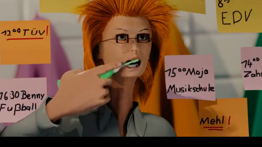 Der Animationsfilm „Zahn-Zeit“ von Christiane Schütze erzählt im Zeitraffer das Leben einer Frau vom Kleinkind bis zur Seniorin. Das Besondere dabei: Man sieht der sich verändernden Protagonistin nahezu ausschließlich beim Zähneputzen vor dem Spiegel zu. „Praktisch ein ganzes Leben in knapp drei Minuten emotionalisierend und technisch gut rüberzubringen, ist eine tolle Leistung, die wir würdigen wollen“, so Andreas Stenschke. „Und das alles anhand einer vermeintlich selbstverständlichen alltäglichen Tätigkeit wie dem Zähneputzen“, ergänzt Claudia Scarpatetti. Dirk Kropp betont: „Mit der originellen Idee und gelungenen Umsetzung ist Christiane Schütze verdiente Siegerin des Wettbewerbs. Denn genau darum ging es uns bei der Ausschreibung: Die Wichtigkeit guter Zahngesundheit kreativ und nachhaltig auf den Punkt zu bringen.“