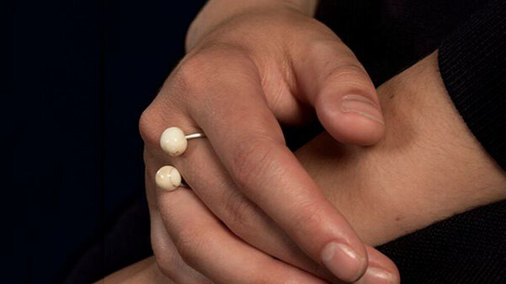 Für den Ring habe ich meine eigene Weisheitszähne verwendet. Zwei meiner Lehrer von der Design Academy Eindhoven gaben mir außerdem ihre aufbewahrten Zähne - für sie habe ich als Test persönlichen Schmuck entworfen. Und ich fragte meinen Zahnarzt, ob er adulte Zähne für mich sammelt. Die Idee ist aber, dass die Menschen mir ihre eigenen Zähne schicken, und ich daraus für sie persönlichen Schmuck mache.