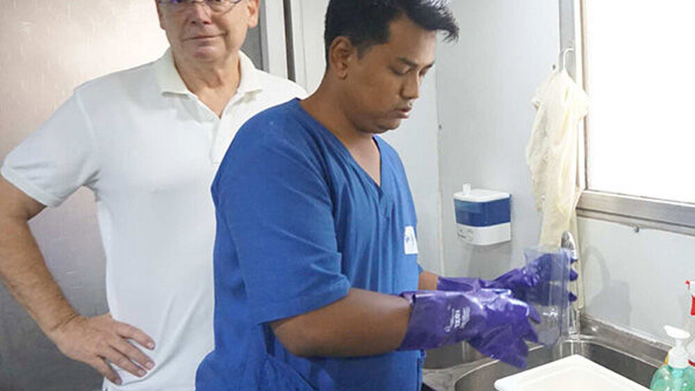 Super: Dr. Vera Pedersen, Fachärztin für Unfallchirurgie und Orthopädie, war mit zwei Kolleginnen Anfang November mit den Swimming Doctors im Einsatz und hatte in ihrem Einsatzbericht angemerkt, dass im OP-Bereich eine konsequente Aufbereitung und Verpackung chirurgischer Instrumente leider nicht möglich sei. Nun aber ist die Lücke geschlossen. Nur die hierarchischen Fragen müssen noch geklärt werden: Wer wann was wie aufbereiten darf oder soll. Wieder einmal wird es nichts mit Panorama während der Flussfahrt und der Ankunft in Tha Byu Chaung.