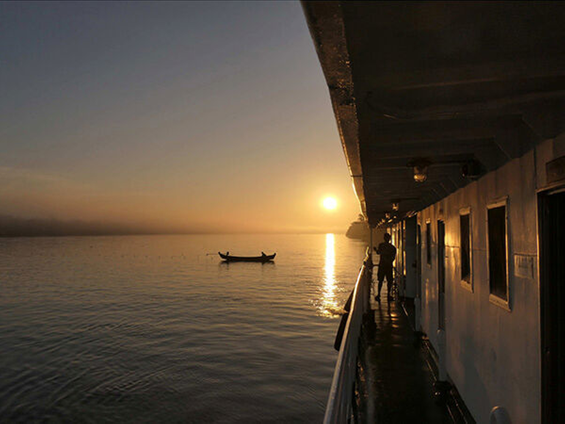 Vor dem Schlafen gehen Duschen nach Reihenfolge: Die für uns reservierte Dusche funktioniert auch noch nach einem Jahr, bei den beiden anderen ist man - wie zu erwarten- auch auf der MS Futura auf Fässer und Schüsseln zum Schöpfen übergegangen, offensichtlich klappt das nicht mit der Filterung des Flusswassers. In den Kabinen springen dann bald die Klimaanlagen an, damit wenigstens zum Einschlafen und für ein paar Stunden eine erträglichere Temperatur herrscht, allerdings geknüpft an das Geräusch des Schiffsgenerators.