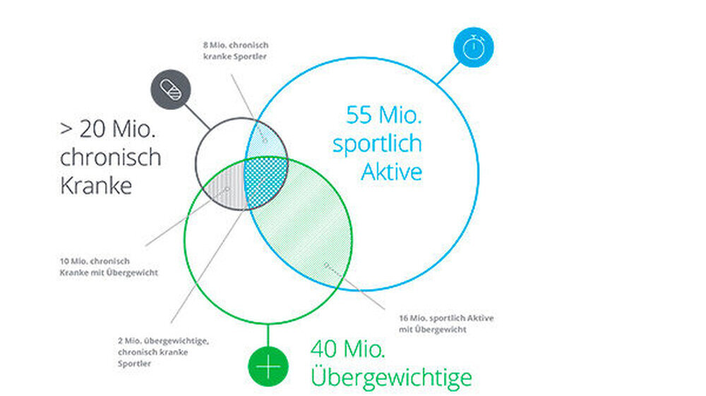 Zu dieser Nutzergruppe zählen jene, die sich selbst als übergewichtig bezeichnen bzw. als übergewichtig wahrnehmen. Der Anteil dieser Gruppe an der Gesamtbevölkerung nimmt stetig zu. Bisherige Angebote fokussieren sich besonders auf entsprechende Wellbeing-Apps. Hier liegt der Fokus wiederum auf Monitoring, Trainingsratgebern und Ernährungssupport. Zusätzlich werden Fitness-Tracker gezielt in dieser Zielgruppe positioniert. Hier haben selektiv vereinzelte Krankenkassen eine Vorreiterrolle übernommen. Beispielsweise übernimmt die Barmer die Kosten für einen Fitness-Tracker unter der Bedingung, dass sich der Versicherte mindestens an 20 von 42 Tagen mindestens 30 Minuten lang bewegt.