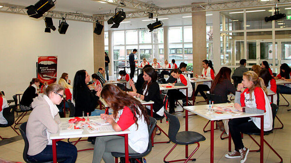 Etwa 25 Schülerinnen des Ausbildungsgangs Zahnmedizinische Fachangestellte (ZFA) suchten am Mittwoch den 5. Februar in einer großangelegten Aktion am Berufskolleg Jülich potenzielle Stammzellenspender für die DKMS Deutsche Knochenmarkspenderdatei. Dabei führten die Azubis die Registrierung selber durch, erläuterten ihren Mitschülern die einfache und schmerzlose Prozedur und ließen sich selber registrieren.