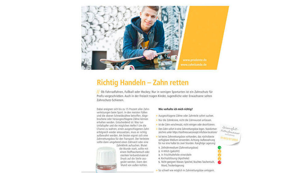 Das Magazin "Zahnunfall" gibt Patienten Tipps – von der Zahnrettungsbox bis hin zum vorbeugenden Schutz für Zähne und Mund.