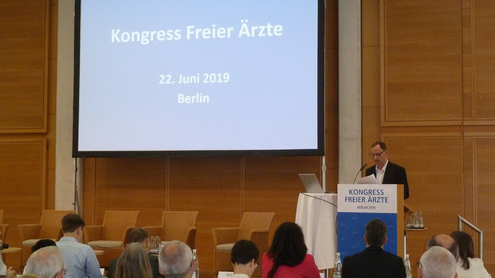 Unter dem Motto "Planwirtschaft und Konzernmedizin" stand das Thema Freiberuflichkeit als zweiter Schwerpunkt des Kongresses auf der Agenda. Dr. Axel Brunngraber, Stellvertretender Vorsitzender der Freien Ärzteschaft, skizzierte die Merkmale der ärztlichen Freiberuflichkeit: wissenschaftlich fundiertes Grundwissen, eine lange akademische Ausbildung, eigene Normsetzung, ein Handlungsmonopol sowie die Orientierung am Gemeinwohl gehörten dazu. Das Vertrauen des Patienten und die Verschwiegenheit des Arztes seien unerlässlich.