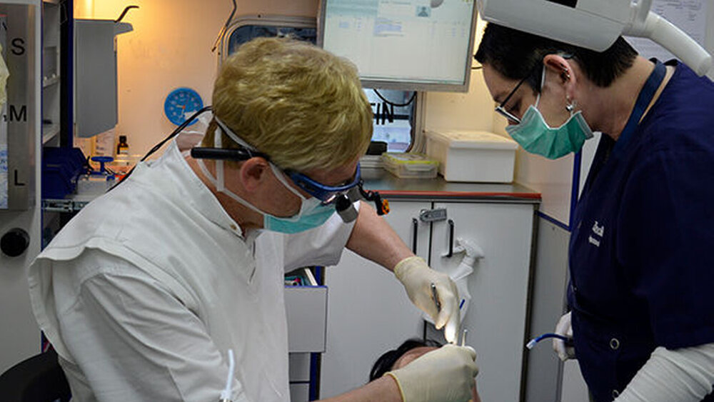 Am Mittwoch hatte Bunke den ehrenamtlichen Freiwilligendienst im Zahnmobil übernommen. "Ich trage gern dazu bei, dass möglichst viele Betroffene professionell behandelt und von akuten Zahnbeschwerden befreit werden können“, betonte der ZKN-Präsident.
