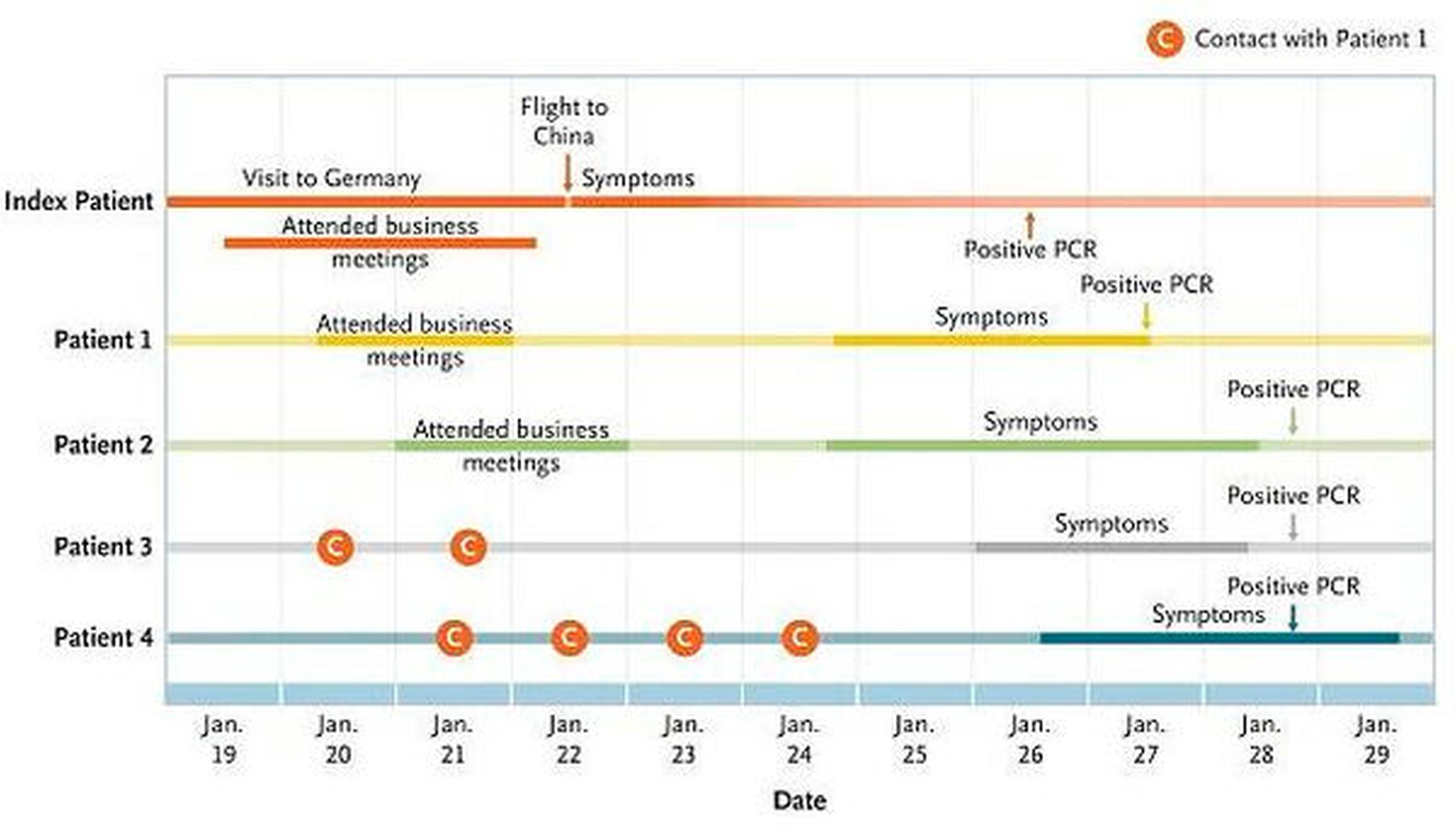 Diese sprunghafte Ausbreitung des neuen Lungenvirus kann auch mit der symptomlosen Übertragbarkeit erklärt werden, wie Mediziner des Tropeninstituts an der Ludwig Maximilian Universität in München nun im New England Journal of Medicine berichten. Sie hatten den ersten Ausbruchsfall in Bayern untersucht und festgestellt, dass die Ansteckung in einer Zeit stattfand, in der die infizierte Person aus China noch keine Symptome zeigte. Mit dieser Erkenntnis muss die Übertragungsdynamik noch einmal überdacht werden.