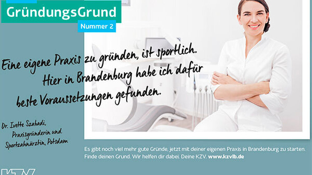 Die Kassenzahnärztliche Vereinigung Land Brandenburg (KZVLB) und das Ministerium für Soziales, Gesundheit, Integration und Verbraucherschutz haben heute eine Kampagne zur Gewinnung von zahnärztlichem Nachwuchs gestartet. Mit der Kampagne „GründungsGründe” machen sie auf die Vorzüge einer Niederlassung für Zahnärztinnen und Zahnärzte im Land Brandenburg aufmerksam.