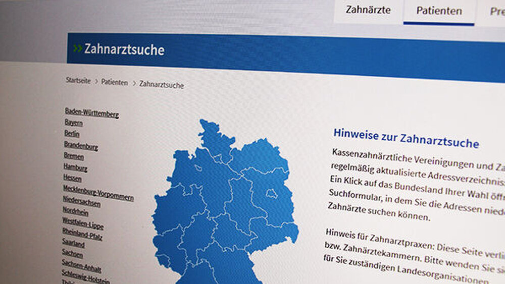 Die Zahnarztsuche ermöglicht die Suche nach Praxen im gesamten Bundesgebiet. Die entsprechende Verteilerseite wurde kürzlich modernisiert. Unter Zahnarztsuche der KZBV gelangen Patienten nun direkt zu den jeweiligen Ländersuchen der Kassenzahnärztlichen Vereinigungen und Zahnärztekammern. Diese wiederum nutzen für den kostenfreien Service fortlaufend aktualisierte Adressdatenbanken, die es auch erlauben, nach verschiedenen Kriterien wie zum Beispiel bestimmten Fachgebieten, Barrierearmut oder spezielle Fremdsprachen-Kenntnisse schnell und unkompliziert eine Praxis in der Umgebung zu finden.