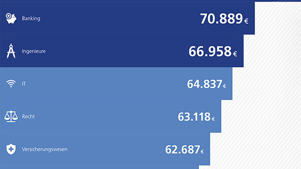 Die Online-Befragung wurde im Herbst 2017 durchgeführt - teilgenommen haben rund 50.000 Fach- und Führungskräfte. Etwa 70 Prozent der Befragten waren dabei Fachkräfte ohne Personalverantwortung, Führungskräfte waren entsprechend zu 30 Prozent vertreten. Bei der Auswertung wurden nur die Angaben derjenigen Umfrageteilnehmer berücksichtigt, die in Vollzeit arbeiten. Alle Gehaltsdaten sind in Euro angegeben. Sämtliche Gehaltszahlen beziehen sich auf das durchschnittliche Bruttojahresgehalt inklusive Boni, Provisionen, Prämien etc.