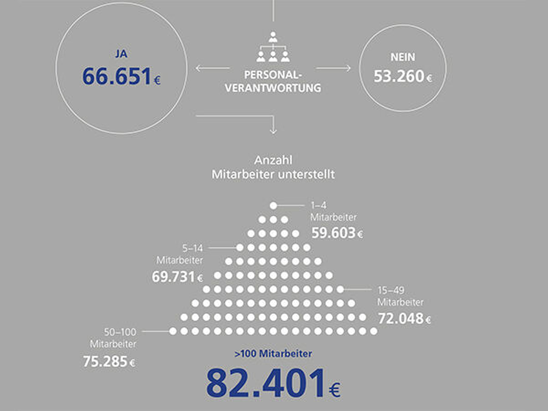 Dabei sieht man zum einen, dass Führungskräfte deutlich mehr verdienen als Fachkräfte ohne Personalverantwortung: