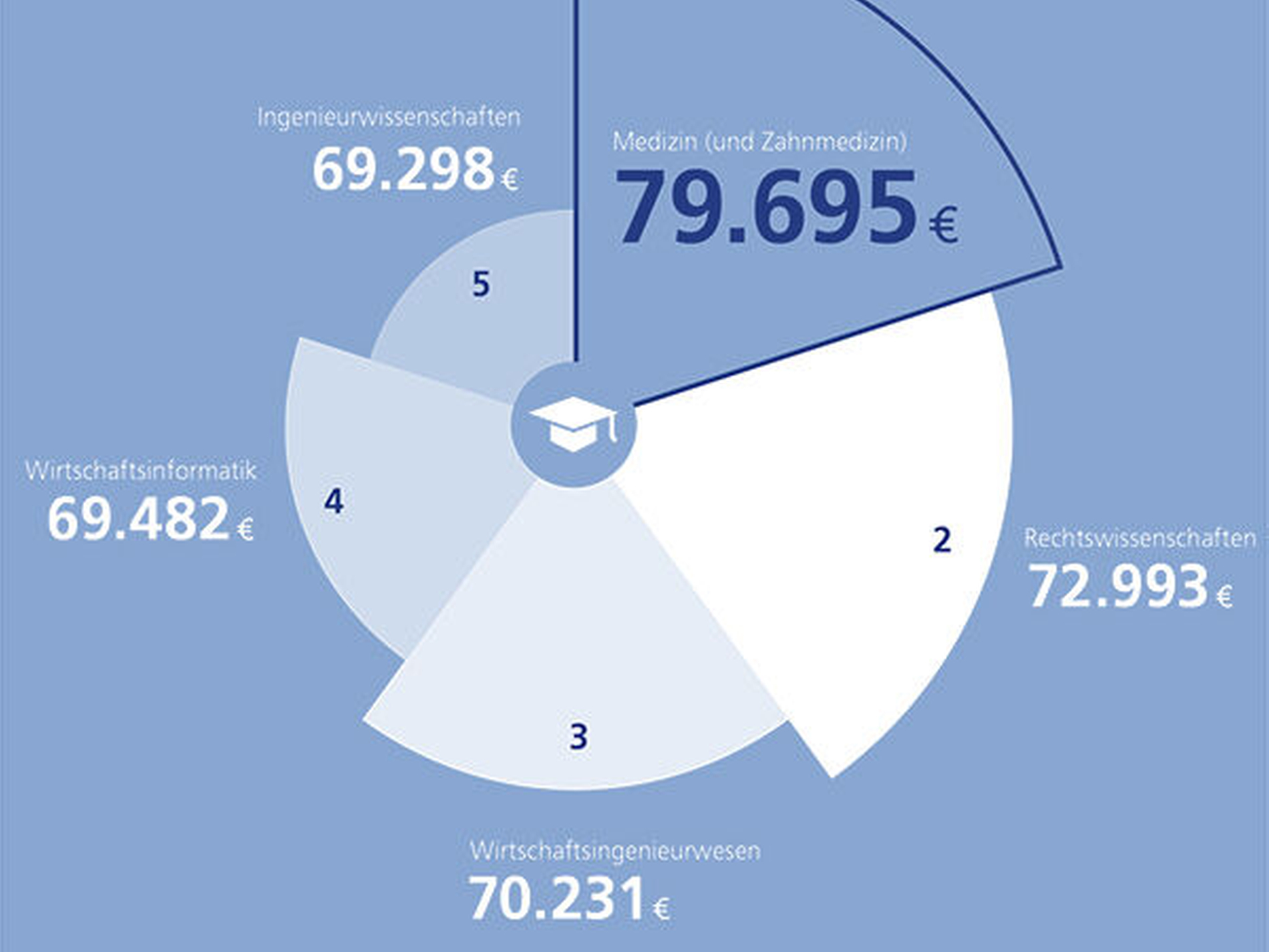 Dabei bestimmen Studienfach und Abschluss das Gehaltsniveau: So öffnet ein Abschluss in Medizin oder Zahnmedizin die Tür zu hohen Gehältern: