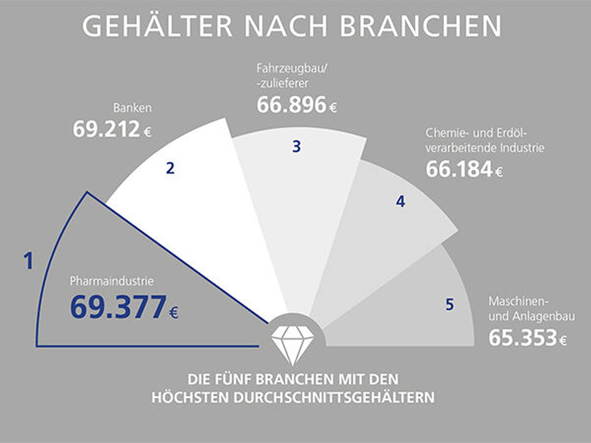 Das Spitzentrio der Branchen mit den höchsten Gehältern bilden die Pharmaindustrie, Banken sowie die Autoindustrie: