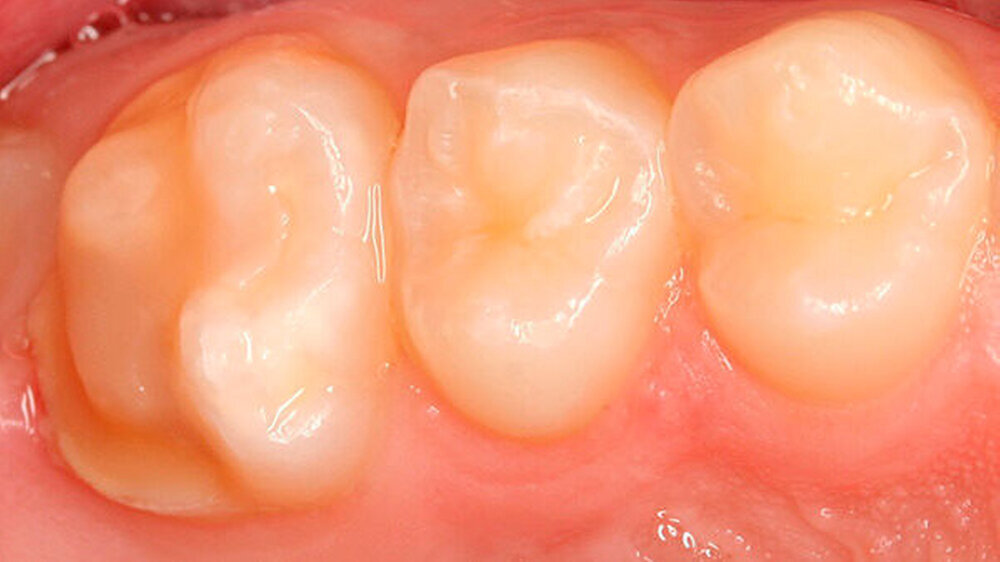 Ein siebenjähriges Mädchen stellte sich gemeinsam mit ihrem Bruder und der Mutter zu einer Untersuchung vor. Zähnärztliche Untersuchungen hatten zuvor regelmäßig stattgefunden, doch aufgrund eines Umzugs musste der Behandler gewechselt werden. Die Mutter berichtete, dass vor nicht allzu langer Zeit einmal ein Backenzahn gefüllt werden musste, aber sie wisse nicht mehr, ob es sich dabei um einen Milch- oder einen bleibenden Zahn gehandelt hatte.