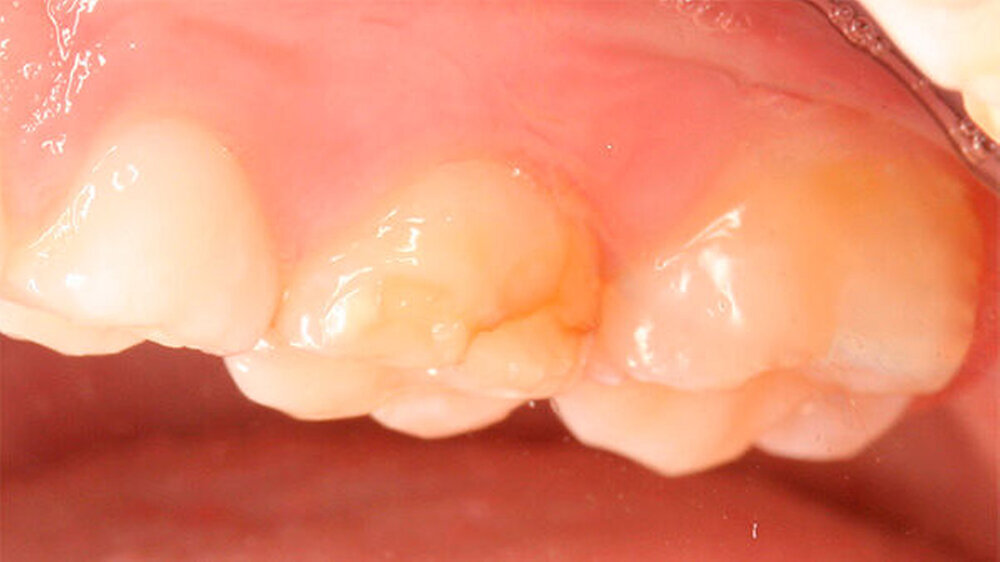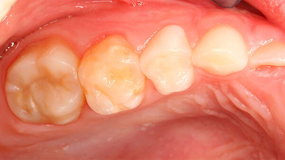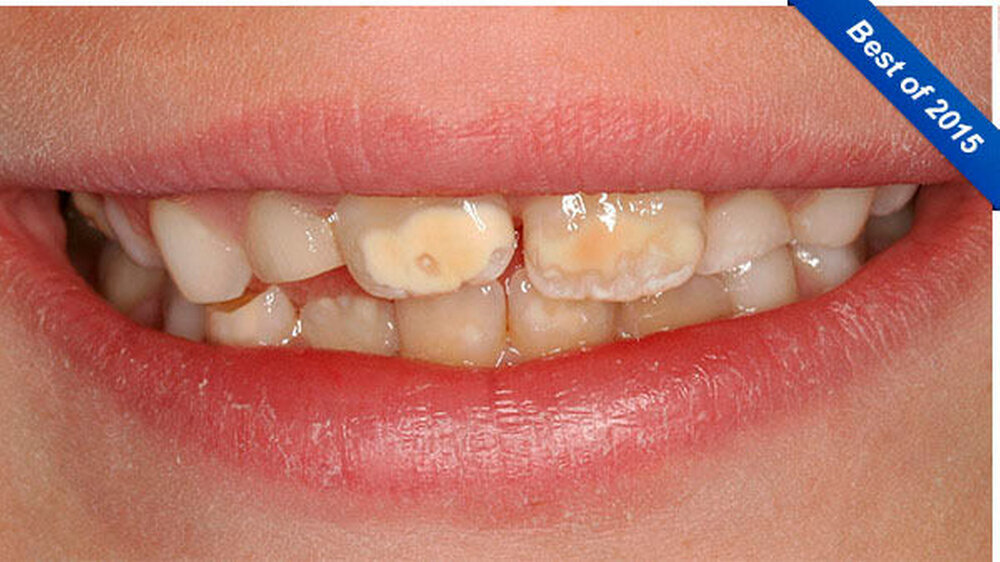 Die achtjährige Patientin wurde 2012 mit der Verdachtsdiagnose einer Fluorose von ihrem Hauszahnarzt in die Klinik für Zahnerhaltungskunde und Parodontologie des Universitätsklinikums Freiburg überwiesen. Zusätzlich zur Verifizierung der Diagnose wurde darum gebeten, die weitere Behandlung des Zahns zu übernehmen und ihn restaurativ und langfristig zu versorgen. Die bisherigen Versuche mit adhäsiver Füllungstherapie seien gescheitert.