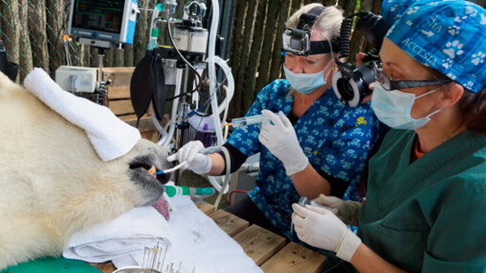 Eisbär mit Zahnweh: Lars ist der Vater des berühmten Berliner Bären Knut und lebt im dänischen Zoo von Aalborg. Ein dortiges Expertenteam hat den 400 kg-Koloss mit Spezialwerkzeug unter freiem Himmel zahnmedizinisch behandelt. Eine Bilderstrecke dokumentiert den ungewöhnlichen Eingriff.