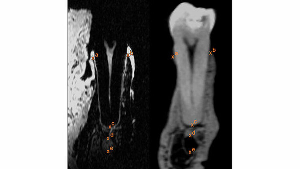 Kernstück der Dental-MRT-Methode ist eine etwa einen Zentimeter hohe Spule aus zwei parallel angeordneten Metallringen. Aufgrund ihrer elektrophysikalischen Eigenschaften verstärkt die Doppelspule die MRT-Signale des umschlossenen Gewebes. Dadurch wird eine Auflösungsgenauigkeit von etwa einem Drittel Millimeter erreicht, die der des Röntgens nahekommt. Die Spule funktioniert ohne Energie und ist für den Patienten absolut ungefährlich. „Unsere Lösung für ein altes Problem der Zahnheilkunde ist an sich technisch recht einfach und trotzdem eine echte Innovation“, sagt Studienleiter Jan-Bernd Hövener.