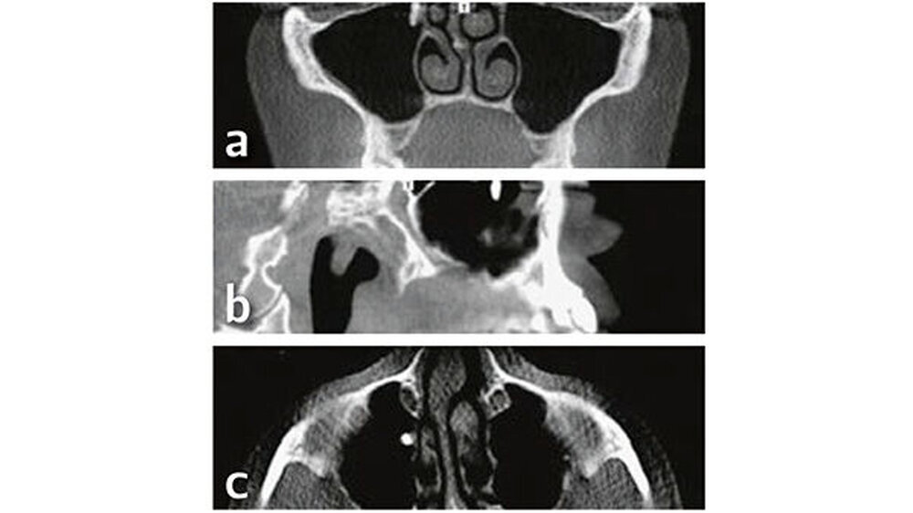Zahlreiche Studien bestätigen, dass das DVT für die Diagnostik und Therapieplanung im Bereich des Sinus maxillaris von großer Bedeutung ist (DGZMK-Leitlinie 2013, Xu et al. 2011, Vogiatzi et al. 2014). Anatomische Strukturen der vorderen Schädelbasis, der oberen Atemwege sowie der Nase und der Nasennebenhöhlen, aber auch Weichteile wie die basale Schleimhaut des Sinus maxillaris werden durch eine DVT-Bildgebung ausreichend dargestellt (Bremke et al. 2009, Guijarro & Swennen 2011, Bornstein et al. 2012).