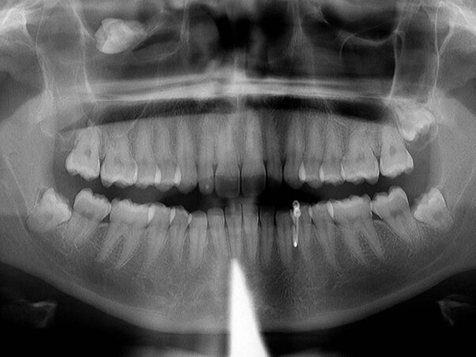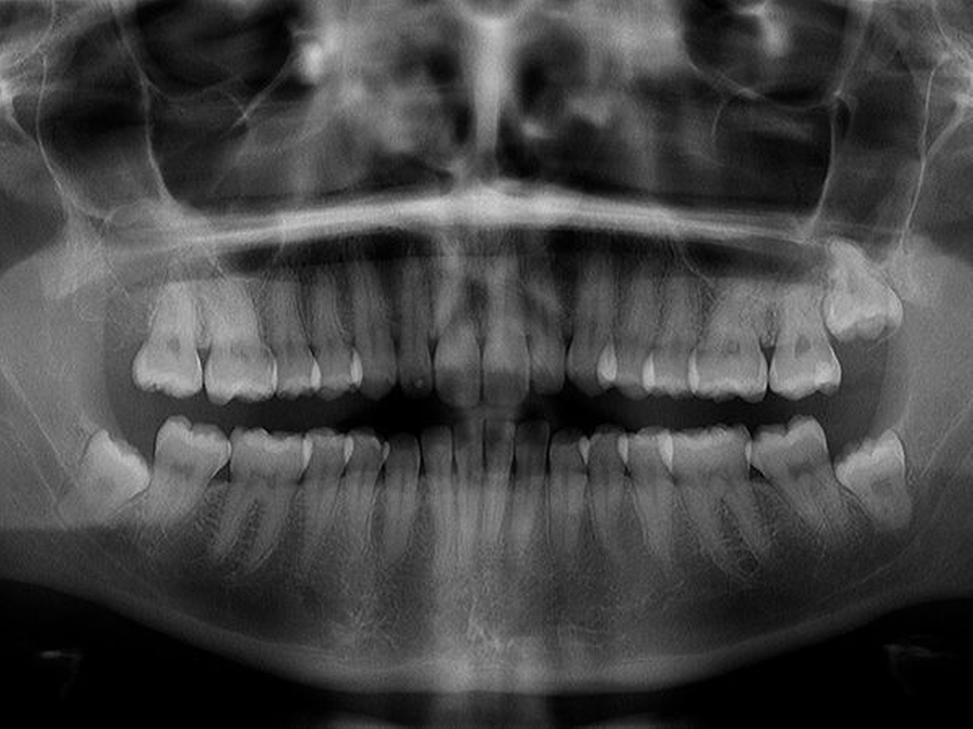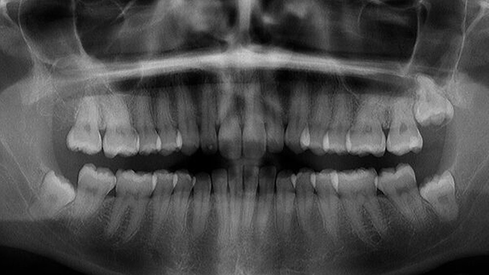 Nach erfolgtem Eingriff unter stationären Bedingungen konnte die Nachbehandlung ambulant in unserer Praxis erfolgen und gestaltete sich im wesentlichen störungfrei. Die Röntgenkontrolle nach vier Jahren zeigte operationsbezogen einen Normalbefund (Abbildung 4): Kieferhöhlen rechts und links (soweit beurteilbar) lufthell, Zähne 28, 38, 48 in etwa orthograd (also: Verlaufsbeobachtung vertretbar).