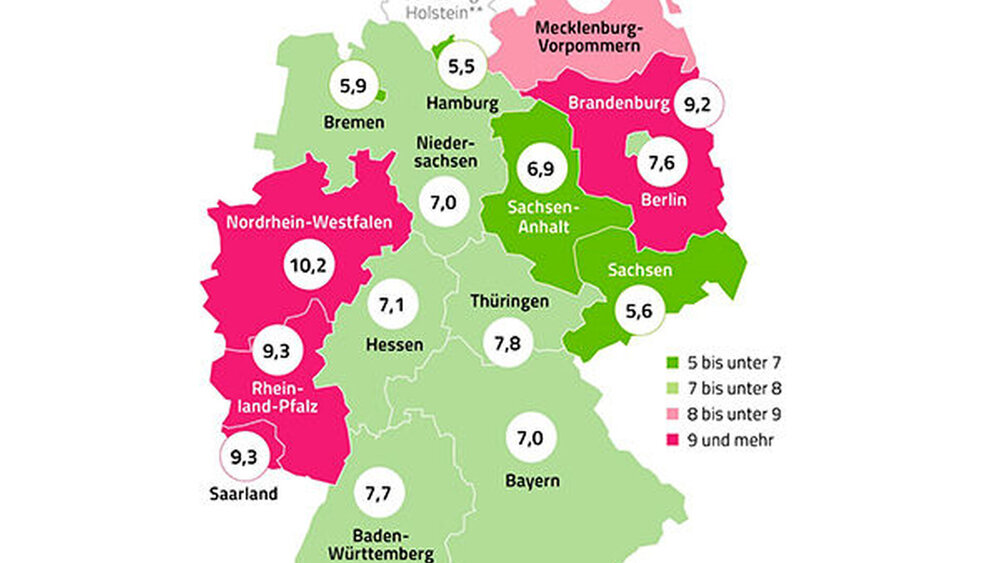 Am niedrigsten war der Anteil der Sechs- bis Neunjährigen mit MIH in Hamburg (5,5 Prozent), und am höchsten in NRW (10,2 Prozent). Demnach kommt schwere MIH vor allem bei Kindern im Westen und Nordosten Deutschlands vor, so Dr. Ursula Marschall, Leitende Medizinerin bei der BARMER.