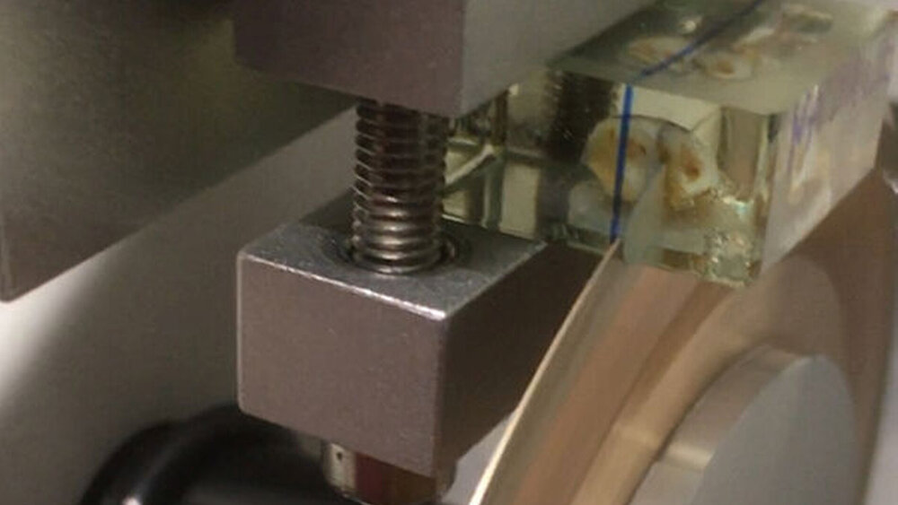 "Wir betteten die Zähne in Harz ein und schnitten sie dann in hauchdünne Schichten - ein für solch seltene Funde äußerst ungewöhnliches Vorgehen, zumal wir die kostbaren Proben hinterher wieder zusammensetzen mussten“, erklärt Wolfgang Müller, Leiter der Arbeitsgruppe. Jede dieser Lagen ist höchstens 150 Mikrometer dünn, das entspricht etwa der Dicke von zwei Blatt Papier. Anschließend trug ein spezieller Laser das Zahnmaterial ab.