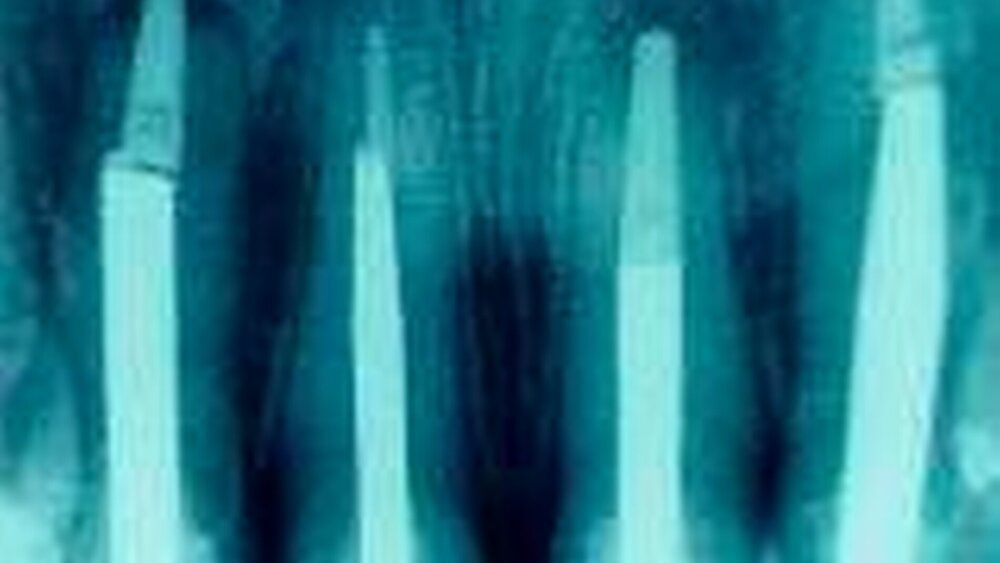 Die zahnärztliche Anamnese ergab, dass neun Monate zuvor in der Poliklinik für Chirurgische Zahn-, Mund- und Kieferheilkunde (Direktor: Prof. Dr. Gerhard Wahl) Wurzelspitzenresektionen an den Zähnen 12, 21, 22 durchgeführt wurden. Vor der orthograden Wurzelfüllung wurde der apikale Abschluss an den Zähnen 12 und 21 mit Hilfe einer „Endoseal®-Titanstiftfüllung“ erreicht (Firma Straumann) (Abbildung 3).