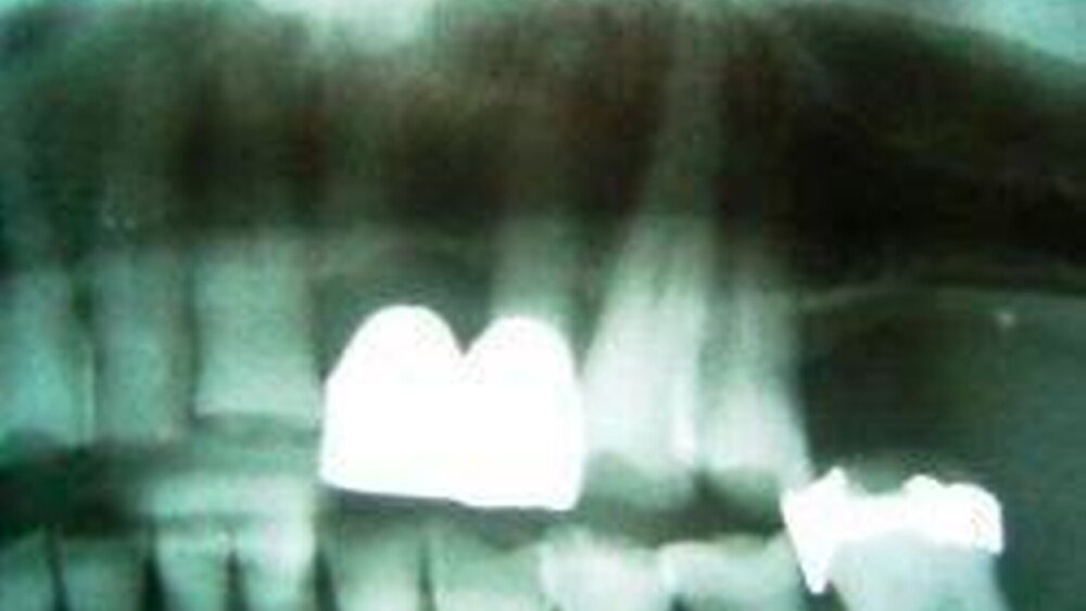 Der Fall: 69-jähriger Patient mit Krone auf 22 und Brückenglied 21. Das Alter der Arbeit beträgt etwa 50 Jahre. Der Befund ergab keine Zahnlockerung und sehr gute Knochenverhältnisse (trotz Bruxismus). Die Arbeit musste noch nie rezementiert werden.