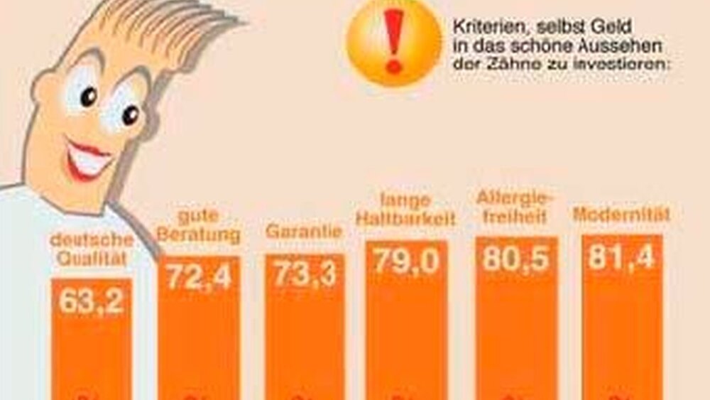 Schöne und gesunde Zähne sind für immer mehr Menschen Ausdruck von Gesundheit, Vitalität und ein Merkmal ihrer Attraktivität. Dementsprechend interessiert sich eine wachsende Anzahlfür individuelle Behandlungsmethoden. Sie wollen umfassend informiert werden, um ihre persönliche Entscheidung zu treffen. Zahlreiche Befragungen zeigen, dass der Wert schöner und gesunder Zähne in der Bevölkerung weit verankert ist. Trotz der wirtschaftlichen Stagnation wächst sogar die Anzahl der Menschen, die bereit sind in ästhetischen Zahnersatz zu investieren. Laut einer von proDente in Auftrag gegebenen, repräsentativen Befragung zählt für über 72 Prozent der Deutschen eine gute Beratung zu den Kriterien, die sie motivieren, eigenständig in Zahnersatz zu investieren.